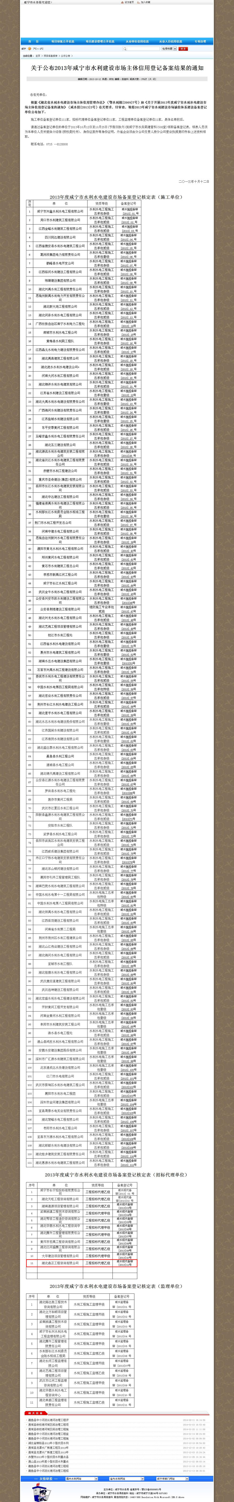 我公司成功入選2013年咸寧市水利建設市場主體信用登記備案單位