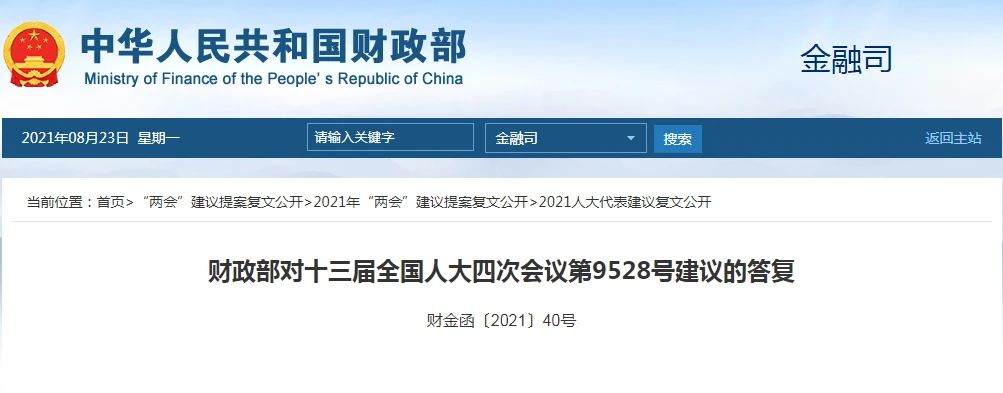 政策速遞 | ?財(cái)政部對(duì)十三屆全國人大四次會(huì)議第9528號(hào)建議的答復(fù)