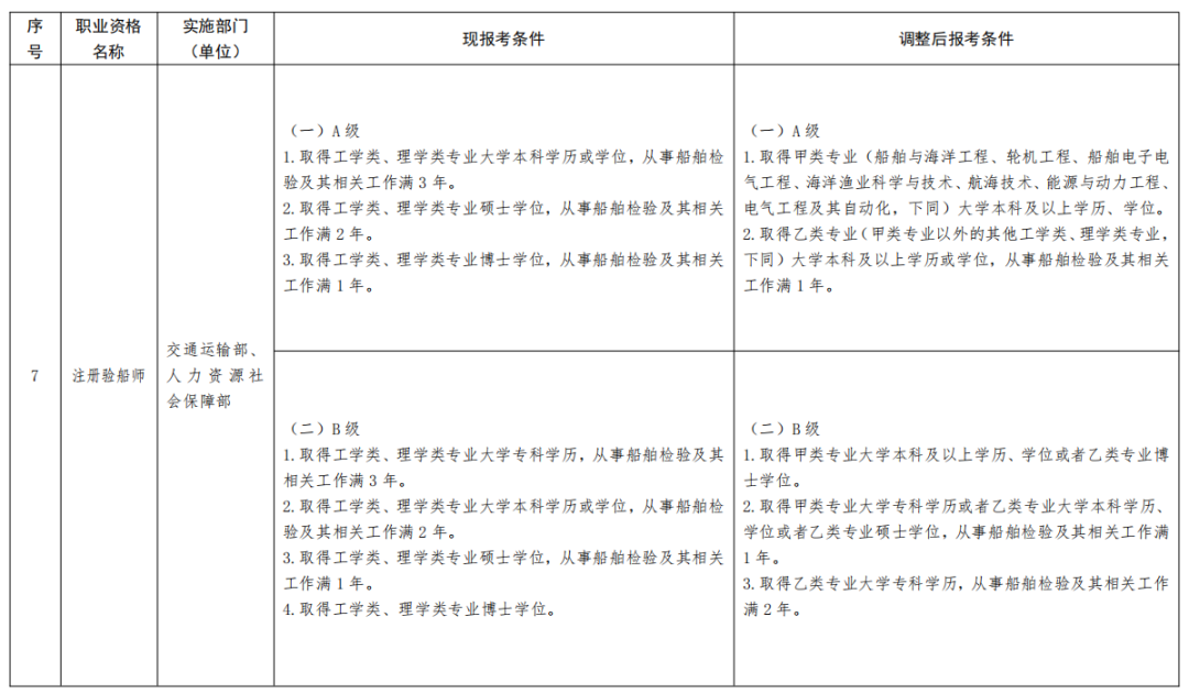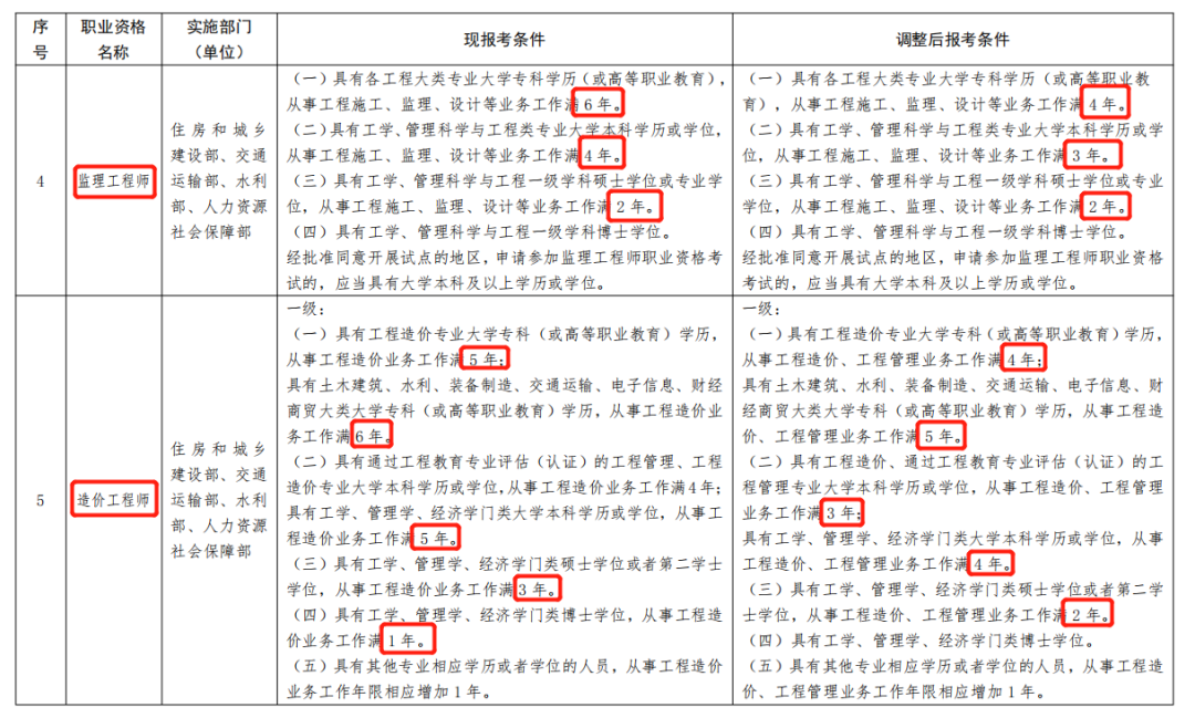 一、《部分準(zhǔn)入類職業(yè)資格考試工作年限要求調(diào)整方案》(見附件)自2022年起實施。除調(diào)整考試工作年限要求外,13項準(zhǔn)入類職業(yè)資格的其他考試報名條件不變。