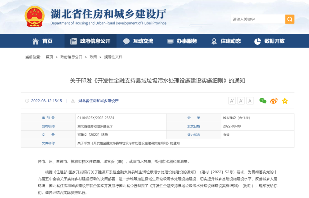 根據(jù)《住建部 國家開發(fā)銀行關(guān)于推進開發(fā)性金融支持縣域生活垃圾污水處理設(shè)施建設(shè)的通知》(建村〔2022〕52號)要求,為貫徹落實黨的十九屆五中全會關(guān)于實施鄉(xiāng)村建設(shè)行動的決策部署,進一步統(tǒng)籌推進縣域生活垃圾污水處理設(shè)施建設(shè),切實提升城鄉(xiāng)基礎(chǔ)設(shè)施建設(shè)水平,改善城鄉(xiāng)人居環(huán)境,湖北省住房和城鄉(xiāng)建設(shè)廳聯(lián)合國家開發(fā)銀行湖北省分行制定了《開發(fā)性金融支持縣域垃圾污水處理設(shè)施建設(shè)實施細(xì)則》(附后),現(xiàn)印發(fā)給你們,請各地結(jié)合實際參照執(zhí)行。