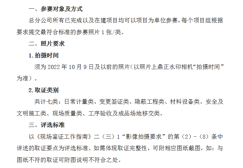 2022年10月9日,我們在全公司范圍內組織了“項目現場鑒證取證技能大賽”活動,自活動通知發(fā)布以來,共收到來自總分公司的119張參賽鑒證照片。