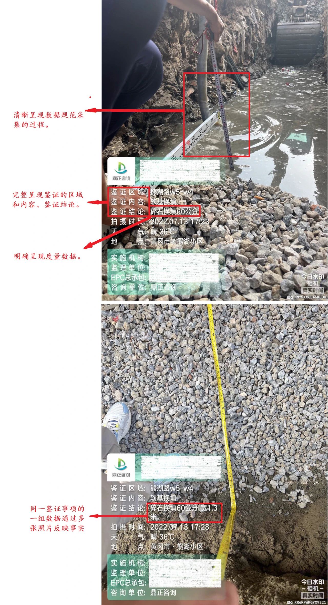 現場鑒證照片是再現工程現場施工質量、安全、隱蔽工程等實際施工情況的重要證據,是各項目施工階段工程監(jiān)理、全過程造價咨詢、結算審核以及解決工程糾紛提供有價值的支撐材料,是筑好每一個項目,夯實鼎正服務品質的基石。