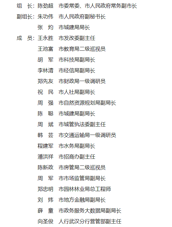 (一)加強組織領導。成立由市人民政府分管城建工作的副市長任組長,市直各相關部門、相關單位為成員的武漢市智能建造試點城市建設工作領導小組(具體組成人員名單附后),負責統(tǒng)籌協(xié)調(diào)全市智能建造試點工作。建立領導小組成員單位聯(lián)席會議制度,定期召開工作會議研究推動試點工作。