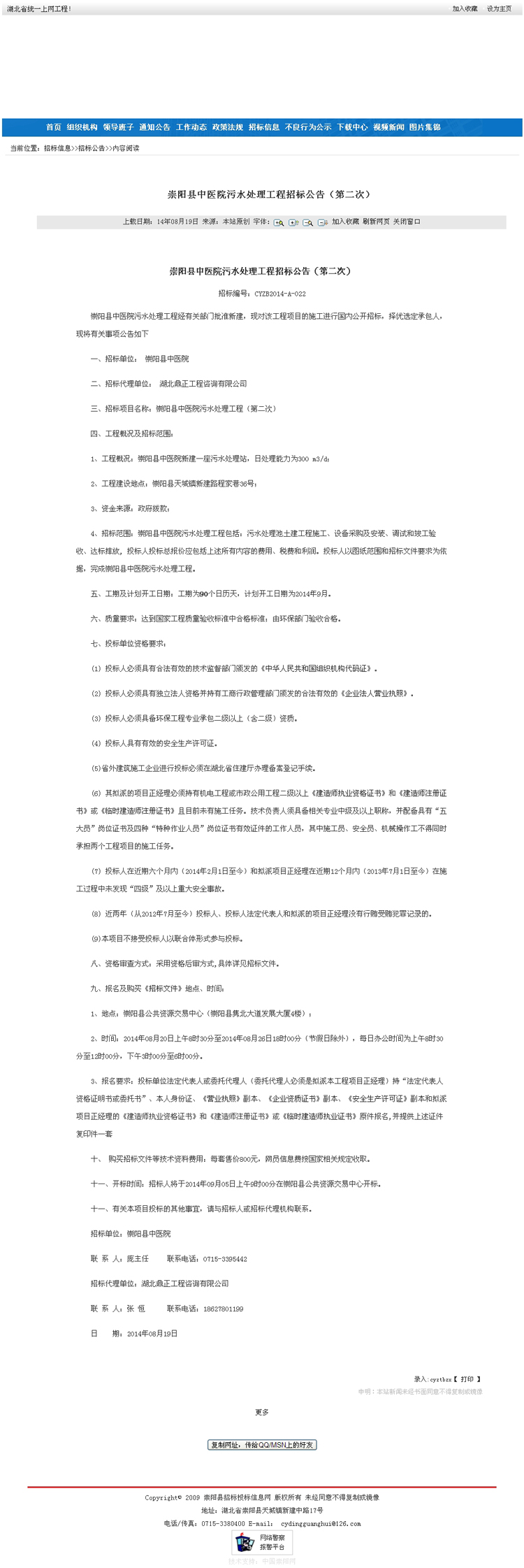 崇陽縣中醫(yī)院污水處理工程(第二次)