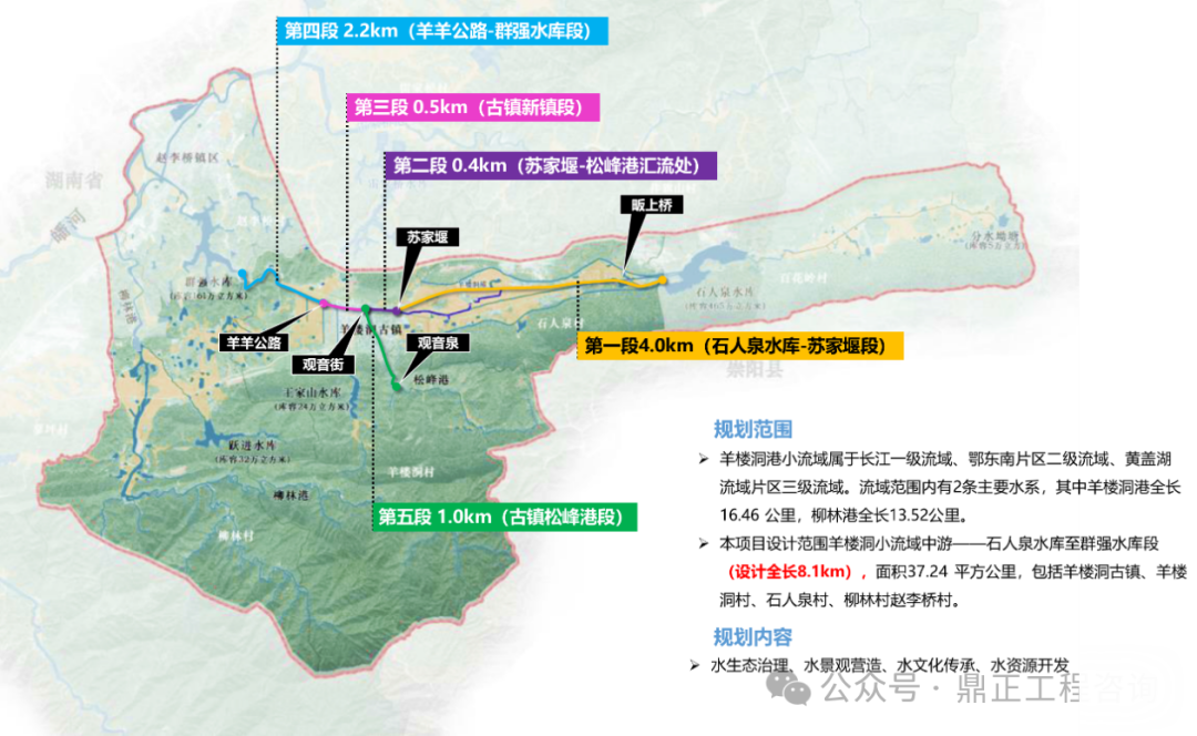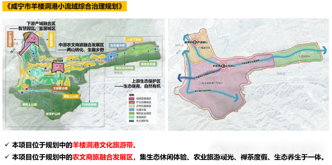 堅(jiān)持下位規(guī)劃服從上位規(guī)劃、下級(jí)規(guī)劃服務(wù)上級(jí)規(guī)劃,形成流域治理“一盤(pán)棋”。落實(shí)上位規(guī)劃對(duì)本項(xiàng)目的定位、功能、治理重點(diǎn)等的相關(guān)要求,找準(zhǔn)自身工作的側(cè)重點(diǎn)以及與全局工作的結(jié)合點(diǎn),才能保證設(shè)計(jì)“不偏題”。以本項(xiàng)目為例,上位規(guī)劃將羊樓洞港小流域劃分為三個(gè)治理區(qū),本項(xiàng)目位于農(nóng)文商旅融合發(fā)展區(qū)和羊樓洞港文化旅游帶,因此本項(xiàng)目不僅要關(guān)注到水生態(tài)、水環(huán)境的修復(fù)提升,還要考慮流域生態(tài)價(jià)值的轉(zhuǎn)化及對(duì)旅游產(chǎn)業(yè)的推動(dòng),利用好流域內(nèi)的茶產(chǎn)業(yè)特色以及茶馬古鎮(zhèn)的歷史文化特色,實(shí)現(xiàn)生態(tài)美與產(chǎn)業(yè)綠深度融合。