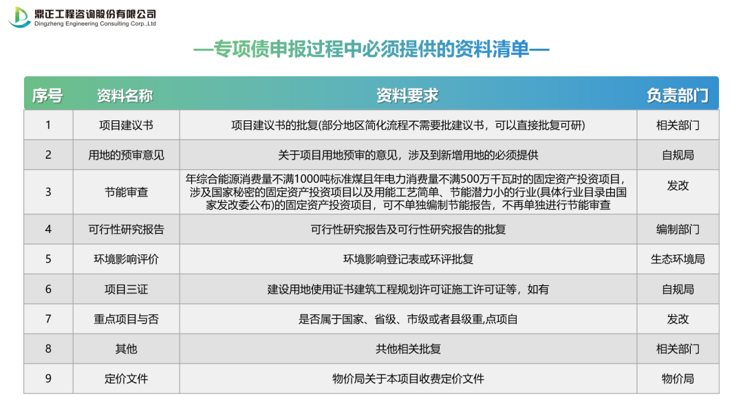 二、專項債申報過程中必須提供的資料清單
