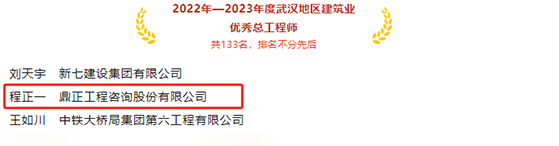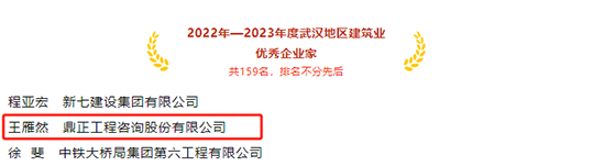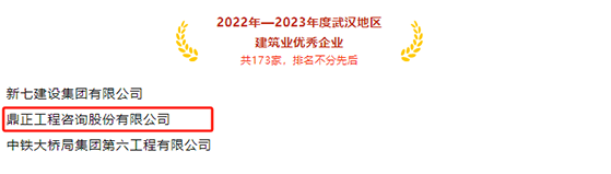 11月21日,武漢建筑業(yè)協(xié)會正式公布“2023年度武漢市最具成長性民營建筑企業(yè)”、“2022-2023年度武漢地區(qū)建筑業(yè)優(yōu)秀企業(yè)、優(yōu)秀企業(yè)家、優(yōu)秀總工程師、優(yōu)秀項目經理”兩項評選結果,鼎正連續(xù)上榜,斬獲多項行業(yè)榮譽!