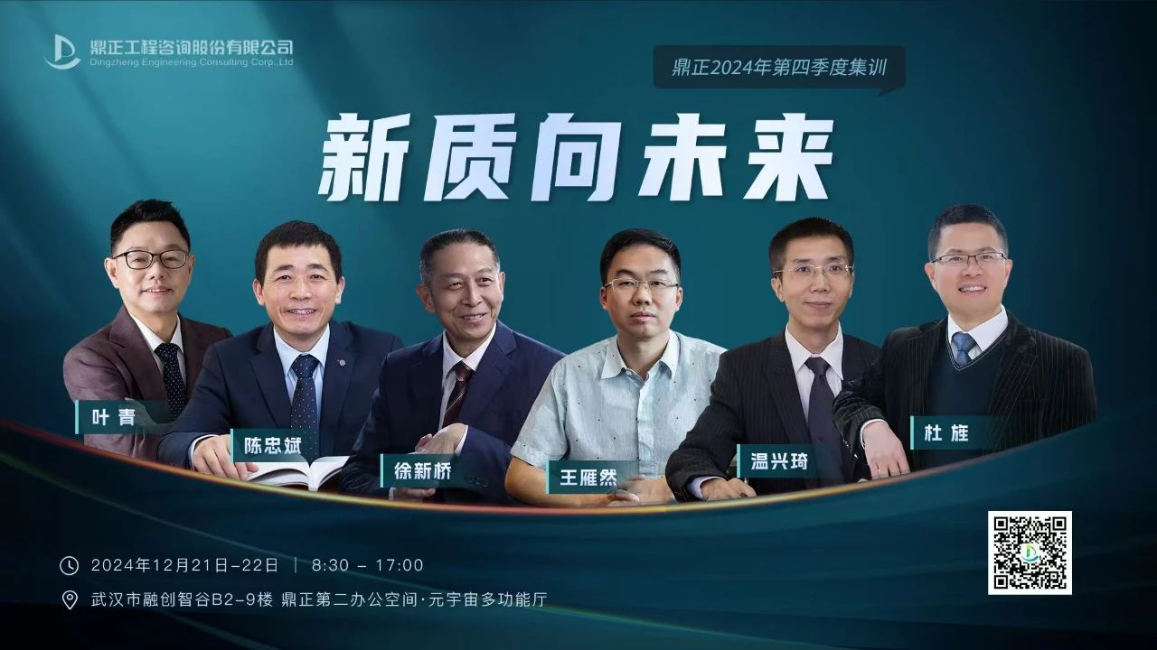 為全面洞悉國內(nèi)外宏觀經(jīng)濟形勢及建筑行業(yè)的前瞻趨勢,深刻剖析工程咨詢行業(yè)新機遇與挑戰(zhàn),助推業(yè)務(wù)多元化轉(zhuǎn)型與企業(yè)高質(zhì)量發(fā)展,鼎正于12月21日至22日舉辦了第四季度“新質(zhì)向未來”中高層管理研修班。