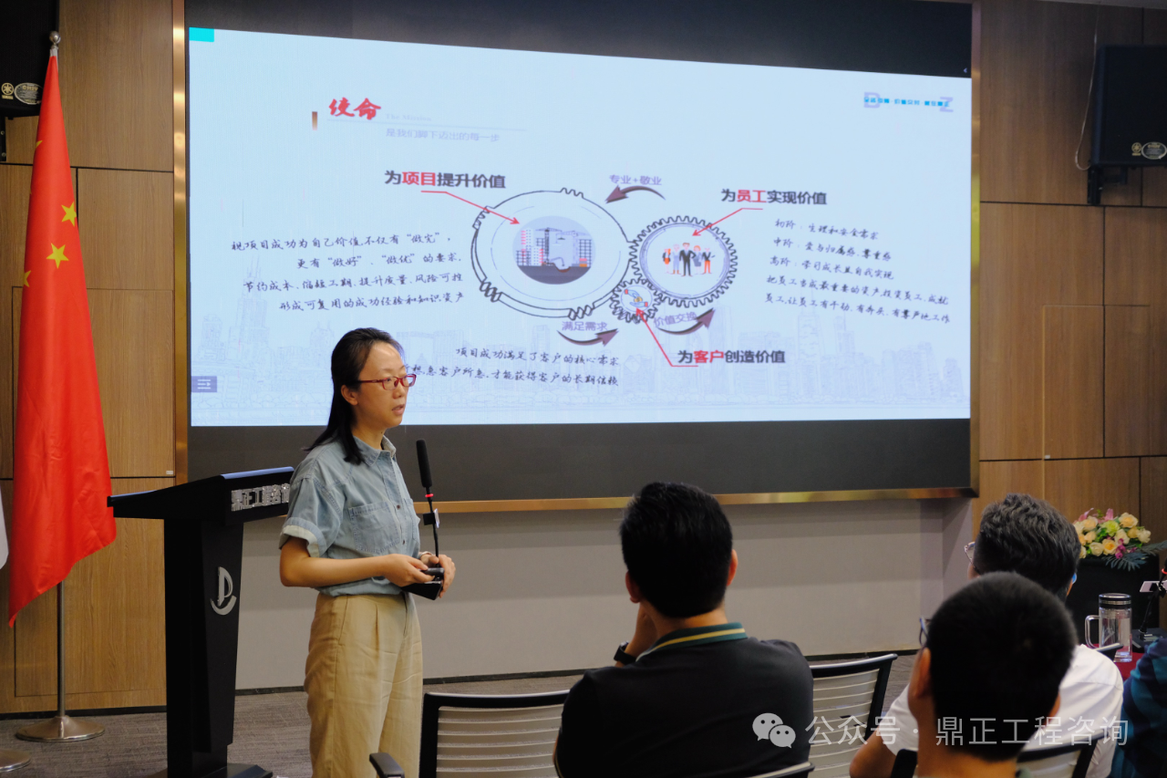 會議伊始,毛迎霞總經(jīng)理宣貫了《以價值創(chuàng)造者為本的鼎正文化體系》,緊扣“價值創(chuàng)造”這一核心要義,全面解讀了企業(yè)文化升級后的使命、愿景、價值觀及人才觀。