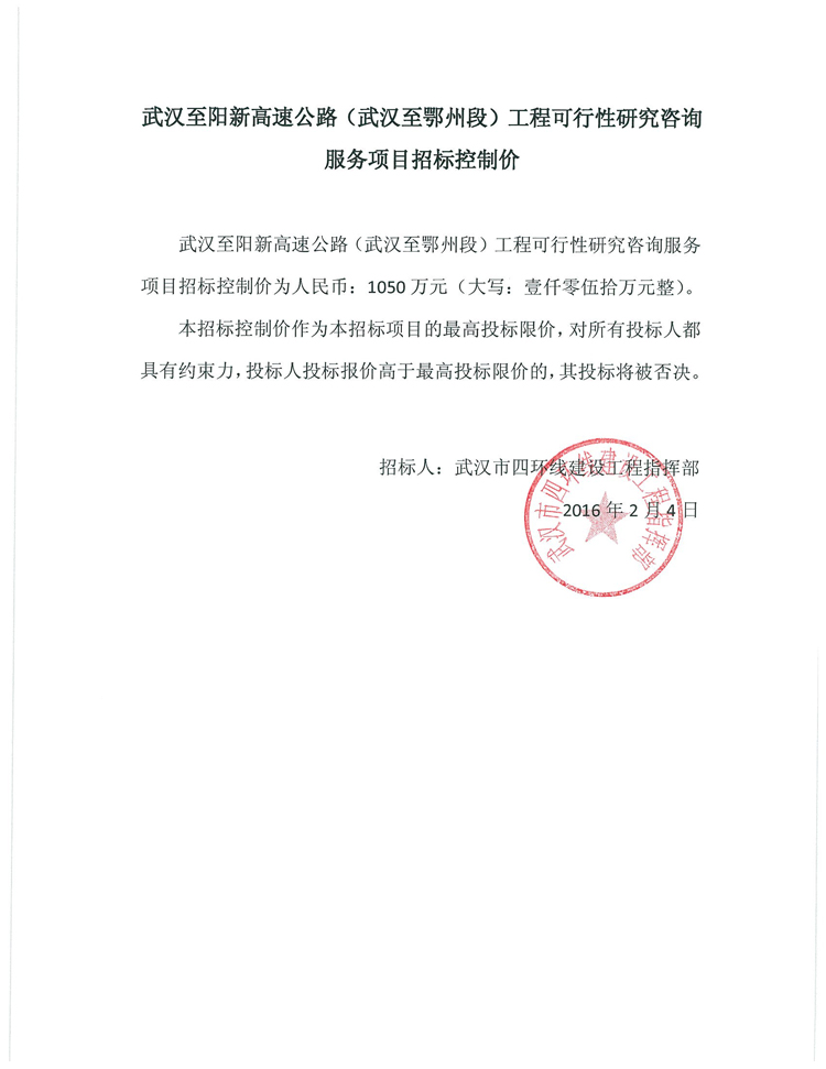 武漢至大悟高速公路工程可行性研究咨詢服務(wù)項目招標控制價通知