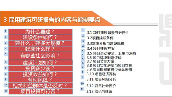 此次培訓采取講解、互動同時進行的方式,大家針對講解過程中產(chǎn)生的困惑及時提問,和主講人一起探討市場調(diào)查、建筑的安全等級如何確定、抗震類別根據(jù)什么確定的、醫(yī)院床位用電量如何確定、項目總投資估算匯總表等問題。技術總監(jiān)朱立冬建議可以從宏觀、中觀、微觀三個層面來闡述如何編制可行性研究報告。