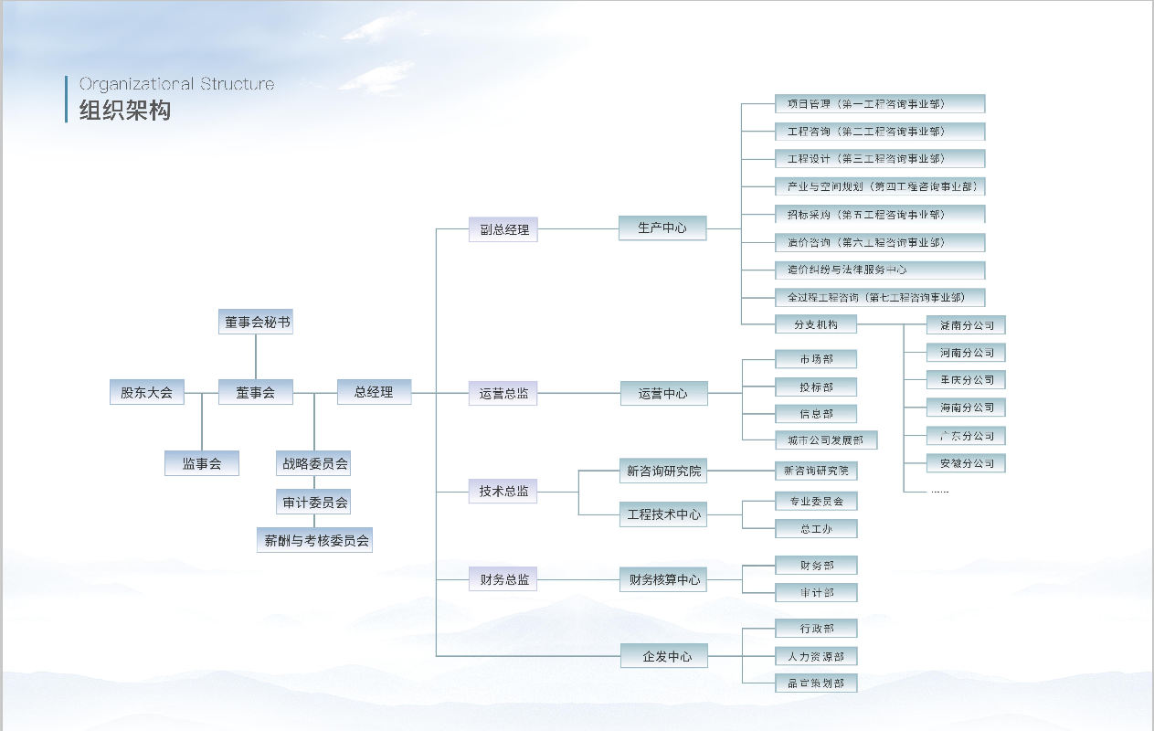 公司下設(shè)工程咨詢事業(yè)部、招標(biāo)代理事業(yè)部、工程造價(jià)咨詢事業(yè)部、規(guī)劃設(shè)計(jì)事業(yè)部等機(jī)構(gòu)...