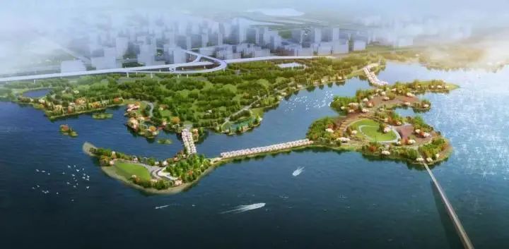 化面積113.5 萬(wàn)平方米,道路364596 平方米,園路142398 平方米,包含:湖澤