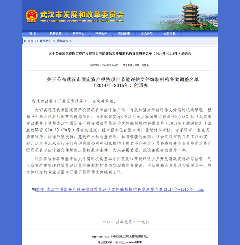 我公司入選武漢市固定資產(chǎn)投資項(xiàng)目節(jié)能評(píng)估文件編制機(jī)構(gòu)名單