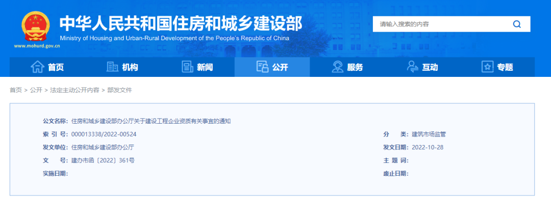 11月2日,住建部官網(wǎng)發(fā)布《住房和城鄉(xiāng)建設(shè)部辦公廳關(guān)于建設(shè)工程企業(yè)資質(zhì)有關(guān)事宜的通知》,一是我部核發(fā)的工程勘察、工程設(shè)計、建筑業(yè)企業(yè)、工程監(jiān)理企業(yè)資質(zhì),資質(zhì)證書有效期于2023年12月30日前期滿的,統(tǒng)一延期至2023年12月31日。二是上述資質(zhì)有效期將在全國建筑市場監(jiān)管公共服務(wù)平臺自動延期,企業(yè)無需換領(lǐng)資質(zhì)證書,原資質(zhì)證書仍可用于工程招標(biāo)投標(biāo)等活動。三是具有法人資格的企業(yè)可直接申請施工總承包、專業(yè)承包二級資質(zhì)。企業(yè)按照新申請或增項提交相關(guān)材料,企業(yè)資產(chǎn)、技術(shù)負(fù)責(zé)人需滿足《建筑業(yè)企業(yè)資質(zhì)標(biāo)準(zhǔn)》(建市【2014】159號)規(guī)定的相應(yīng)類別二級資質(zhì)標(biāo)準(zhǔn)要求,其他指標(biāo)需滿足相應(yīng)類別三級資質(zhì)標(biāo)準(zhǔn)要求。四是持有施工總承包、專業(yè)承包三級資質(zhì)的企業(yè),可按照現(xiàn)行二級資質(zhì)標(biāo)準(zhǔn)要求申請升級,也可按照上述要求直接申請二級資質(zhì)。