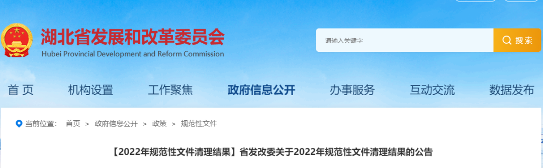 1.湖北省發(fā)改委關(guān)于2022年規(guī)范性文件清理結(jié)果的公告