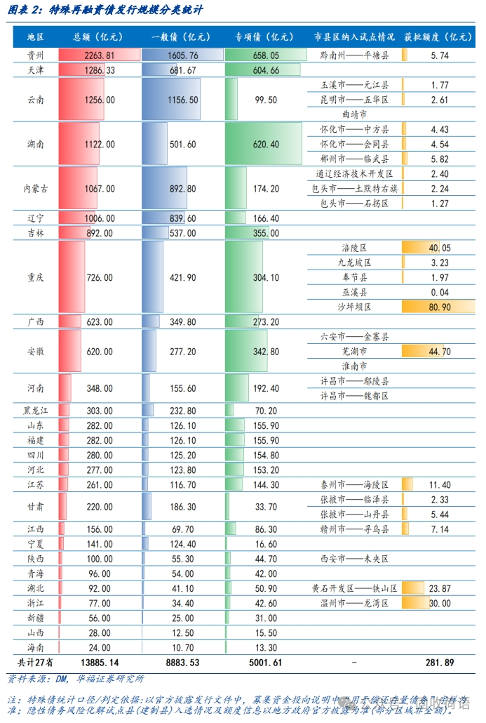 目前化債手段可以歸納以下幾類,分別為特殊再融資債置換、銀行等金融機(jī)構(gòu)的合作支持、盤(pán)活存量資產(chǎn)、化債基金、城投平臺(tái)加速整合與市場(chǎng)化轉(zhuǎn)型。