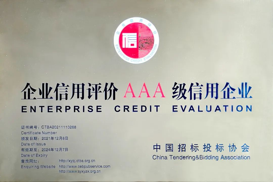企業(yè)信用等級是企業(yè)發(fā)展過程中信用形象的重要標志,也是企業(yè)參與市場競爭的一項重要的無形“資產(chǎn)證”。在國家持續(xù)深入推進“放管服”改革,進一步優(yōu)化營商環(huán)境,取消資質(zhì)審批、加強信用管理的新形勢下,鼎正在眾多參評企業(yè)機構中脫穎而出,獲評AAA信用等級榮譽。