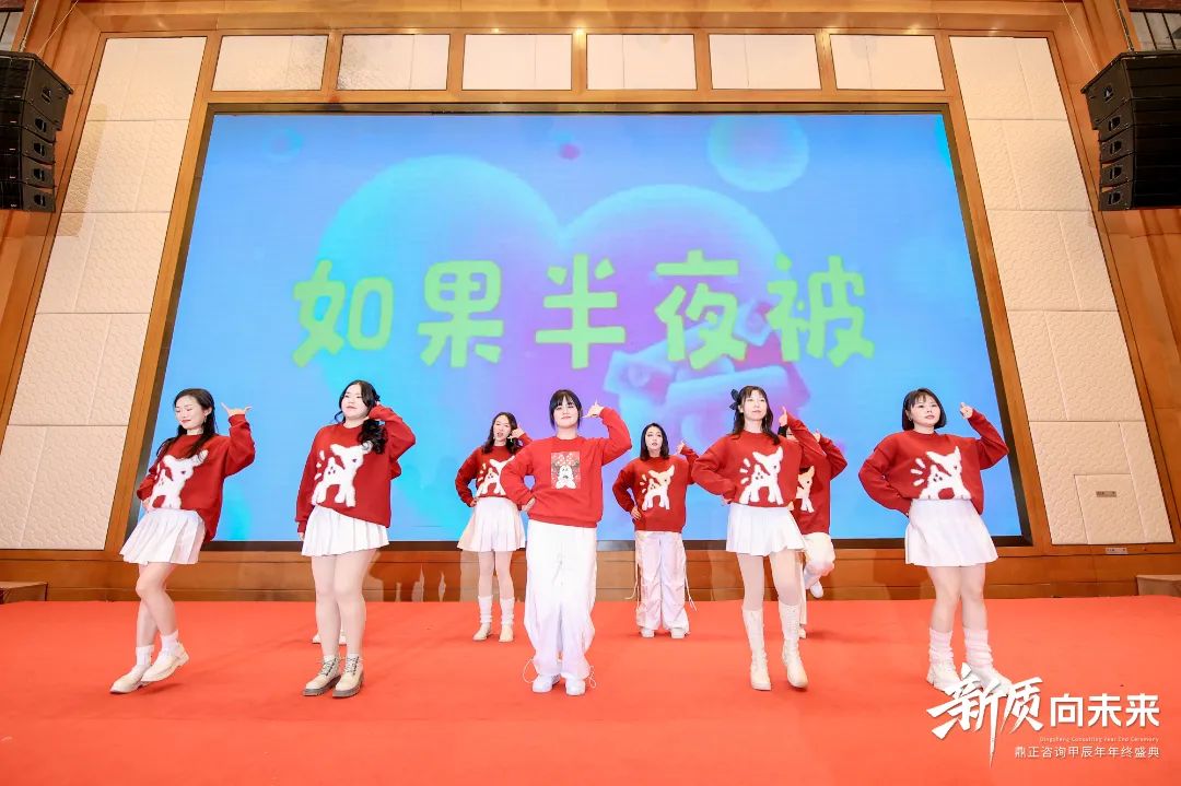 另一邊,由信息部、投標部、城市公司發(fā)展部、市場部、財務部及造價咨詢事業(yè)部臨時組建的女團,帶來了洋溢著青春活力的舞蹈串燒《愛你》+《桃花朵朵開》,展現(xiàn)了別樣的風采。