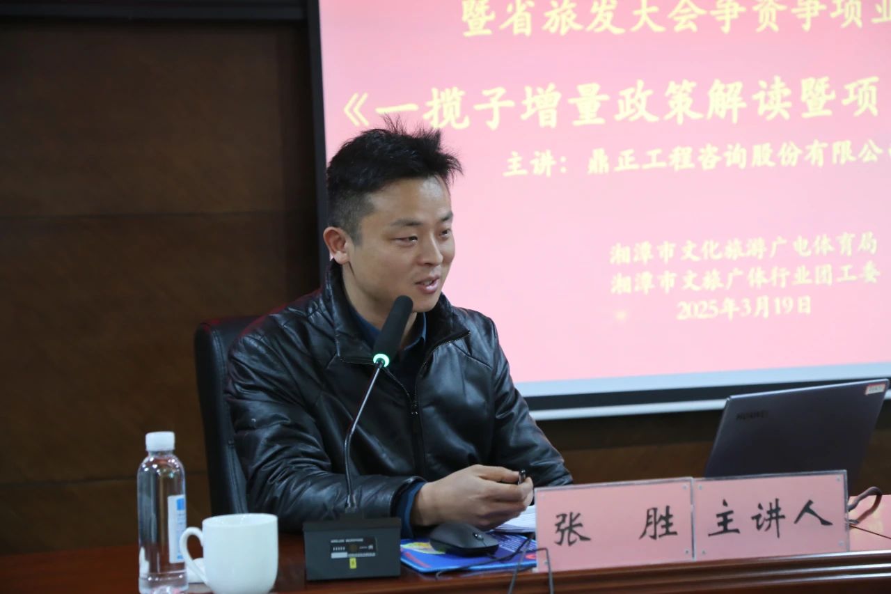 為搶抓增量政策窗口期,提升地方政府項目謀劃儲備質量和項目謀劃水平,精準擴大有效投資。3月19日,鼎正湖南分公司前期咨詢部總經理張勝應湘潭市文旅廣體局之邀,為湘潭市文旅系統(tǒng)開展《一攬子增量政策解讀暨項目謀劃申報》的專題培訓。