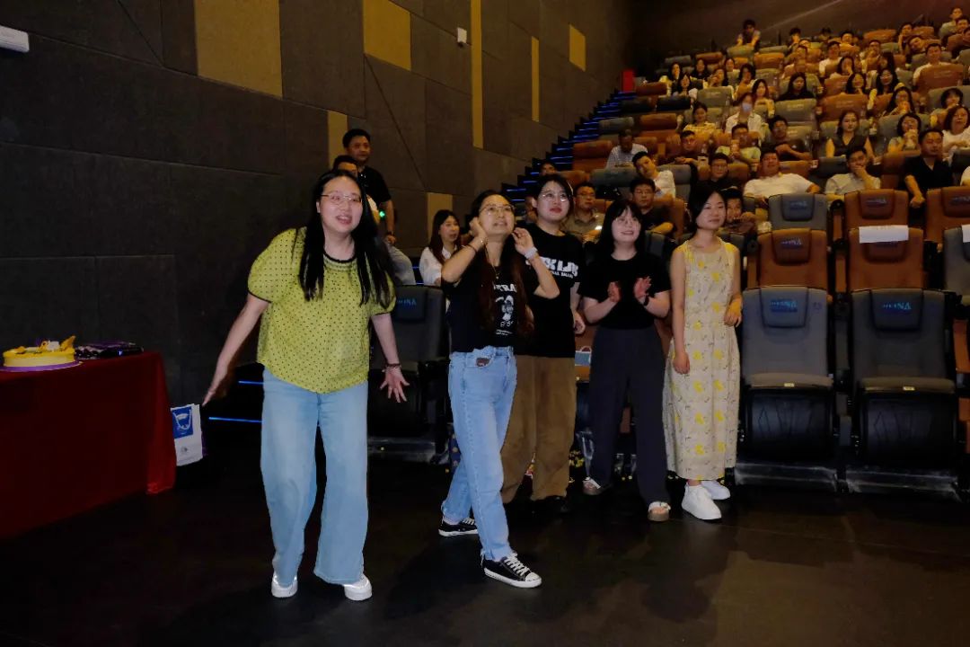 當(dāng)《生日快樂》的旋律響起,5月份的壽星和蛋糕車緩緩入場。大家一同切蛋糕的環(huán)節(jié)溫馨又有愛。