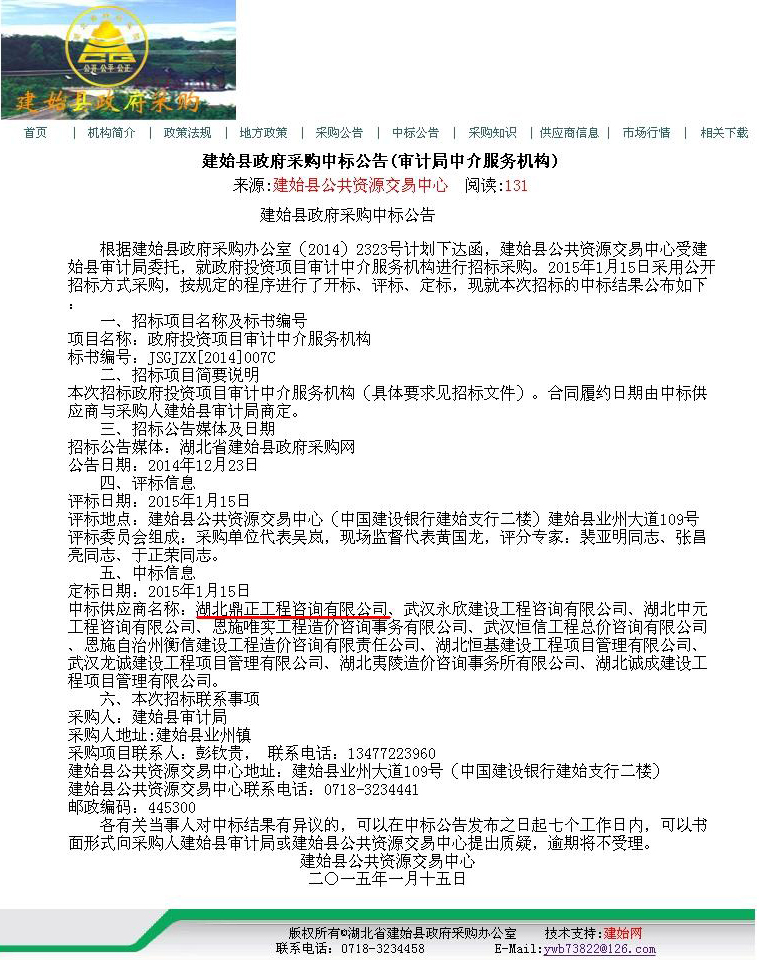 【經(jīng)營(yíng)成果】我司入選建始縣政府投資項(xiàng)目審計(jì)中介服務(wù)機(jī)構(gòu)庫(kù)