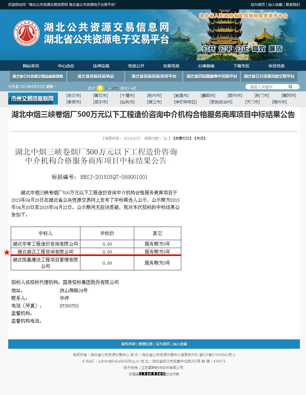 【經(jīng)營(yíng)成果】我司入選湖北中煙三峽卷煙廠500萬(wàn)元以下工程造價(jià)咨詢中介機(jī)構(gòu)合格服務(wù)商庫(kù)