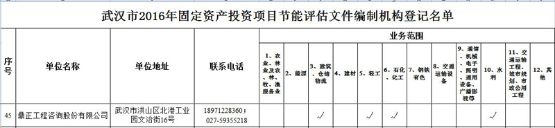 【經(jīng)營成果】我司入選2016年武漢市固定資產(chǎn)投資項(xiàng)目節(jié)能評估文件編制機(jī)構(gòu)登記名單