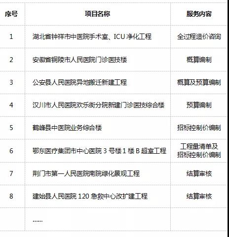 醫(yī)療衛(wèi)生招采項目典型業(yè)績表
