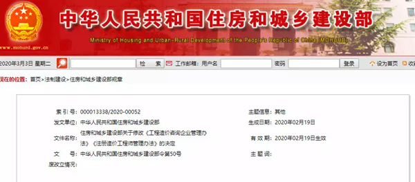 2020年3月3日,住建部50號令“住房和城鄉(xiāng)建設(shè)部關(guān)于修改《工程造價咨詢企業(yè)管理辦法》《注冊造價工程師管理辦法》的決定”一夜間在工程咨詢行業(yè)引發(fā)了激烈的討論。